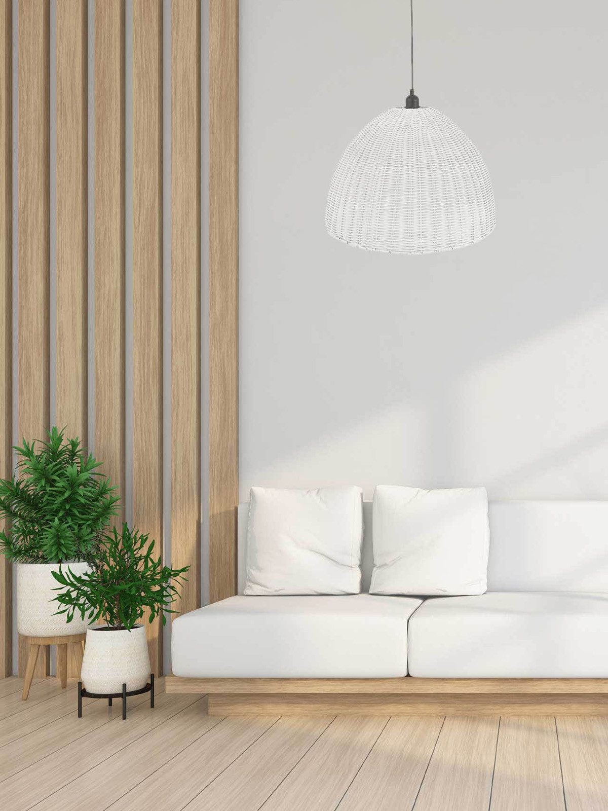 Apportez une touche naturelle et chaleureuse à votre intérieur avec cette élégante suspension en rotin au design bohème.