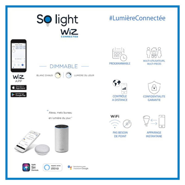 L’ampoule connectée WiZ est une véritable avancée technologique pour le monde du luminaire. « Le contrôle où vous voulez, quand vous voulez », voici la promesse de cette gamme d’ampoules révolutionnaire !