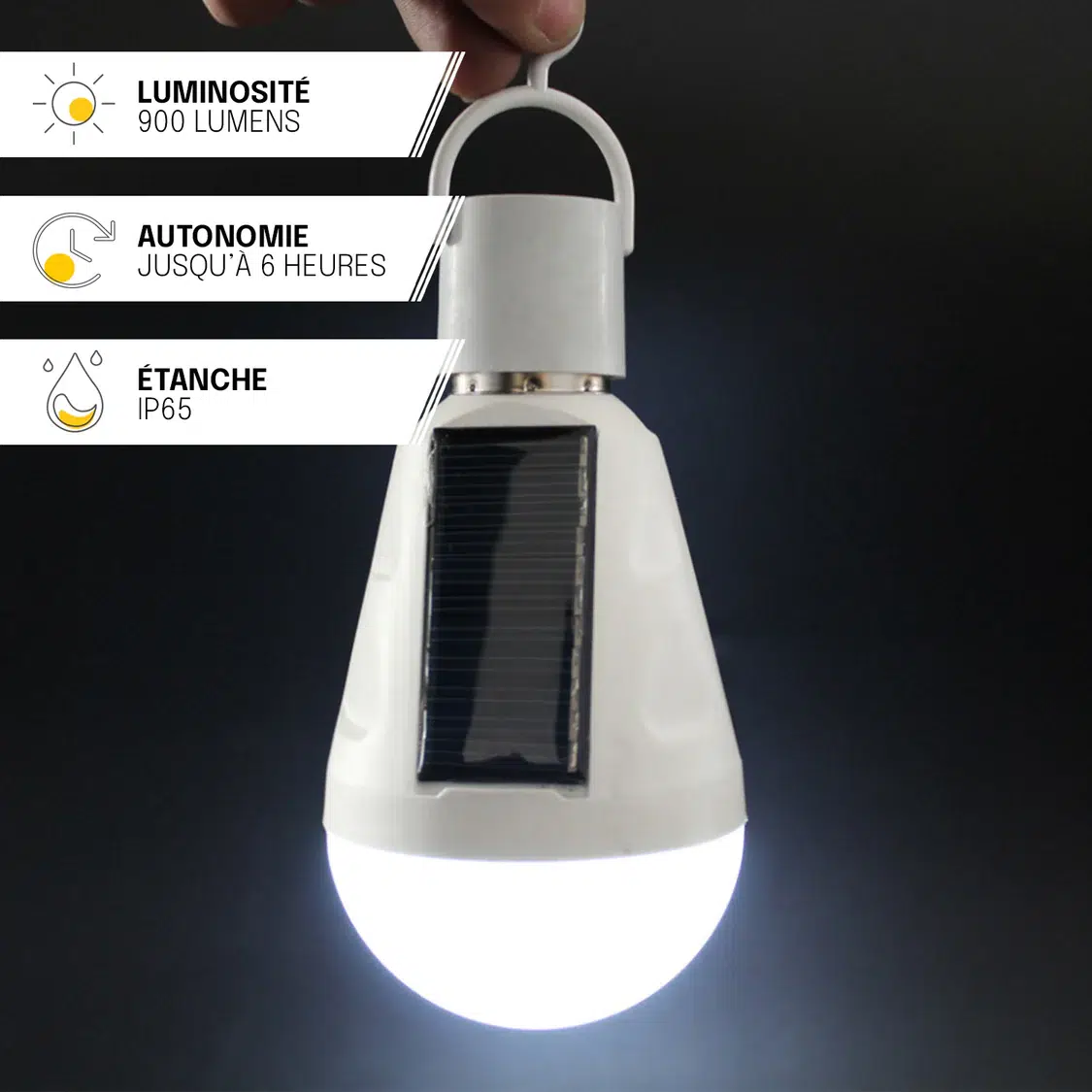 L’ampoule solaire rechargeable E27 est une solution d’éclairage simple, économique et autonome, parfaite pour les intérieurs comme les extérieurs. Grâce à sa technologie LED basse consommation, elle fournit une lumière blanche naturelle de 4000K avec une intensité de 900 lumens.