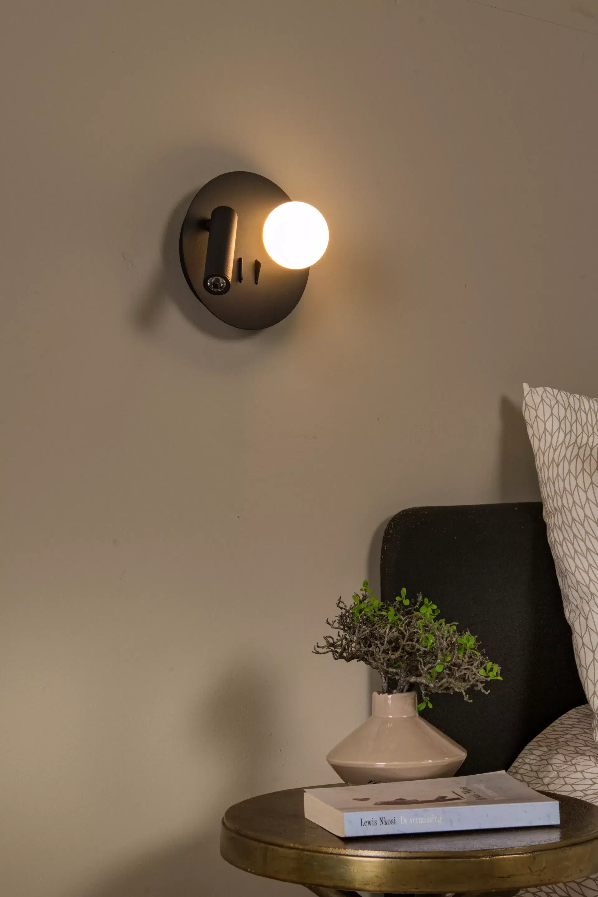 Avec l’applique murale Matiz, votre chambre bénéficie toujours d’un éclairage adapté. Elle offre deux sources lumineuses : une lampe d’ambiance sphérique en verre pour une lumière douce et un spot ajustable pour la lecture. Vous pouvez contrôler chaque source indépendamment grâce à l’interrupteur on/off. Équipée de lampes LED intégrées, Matiz diffuse une lumière blanche chaude (3000K). De plus, elle dispose de ports USB (USB-C et USB-B) pour charger vos appareils externes. Son design compact, avec une hauteur de 9,4 cm et un diamètre de 16,5 cm, s’intègre parfaitement dans votre espace. Garantie de 3 ans incluse.