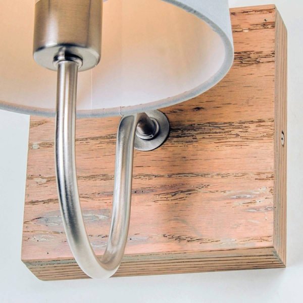 Applique Murale CASSIS Bois Naturel et Abat-Jour Gris Clair