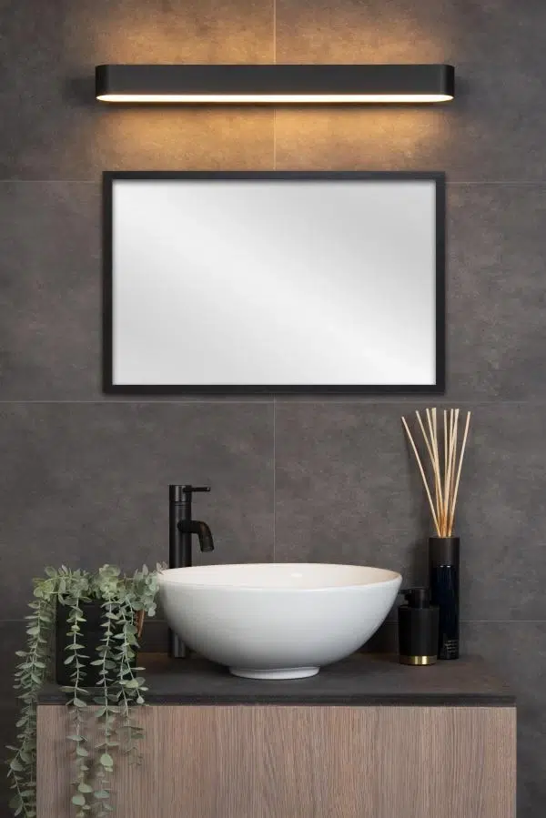 Profitez d’un éclairage à la fois esthétique et fonctionnel avec Madelon, une applique murale idéale pour illuminer votre miroir de salle de bain. Avec sa longueur de 90 cm, elle assure un éclairage optimal tout en garantissant une utilisation sécurisée dans les pièces humides (IP44). Son design moderne, alliant métal noir et acrylique opale, s’intègre harmonieusement à tout type d’intérieur. Sa source lumineuse LED intégrée diffuse une lumière blanche chaude (2700K), créant une ambiance agréable et relaxante. Madelon est également disponible en version 60 cm.