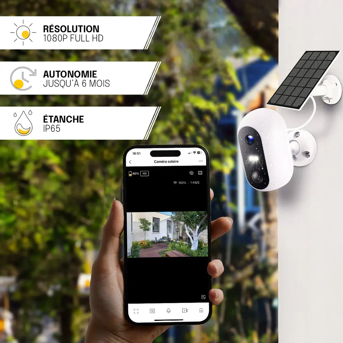 La caméra solaire extérieure IP65 est une solution de surveillance intelligente, autonome et connectée. Grâce à son panneau solaire intégré, elle fonctionne sans raccordement électrique et peut tenir jusqu’à 6 mois en veille ou 2 mois en usage standard (10 activations/jour). Elle est également rechargeable en USB, ce qui en fait une caméra hybride.