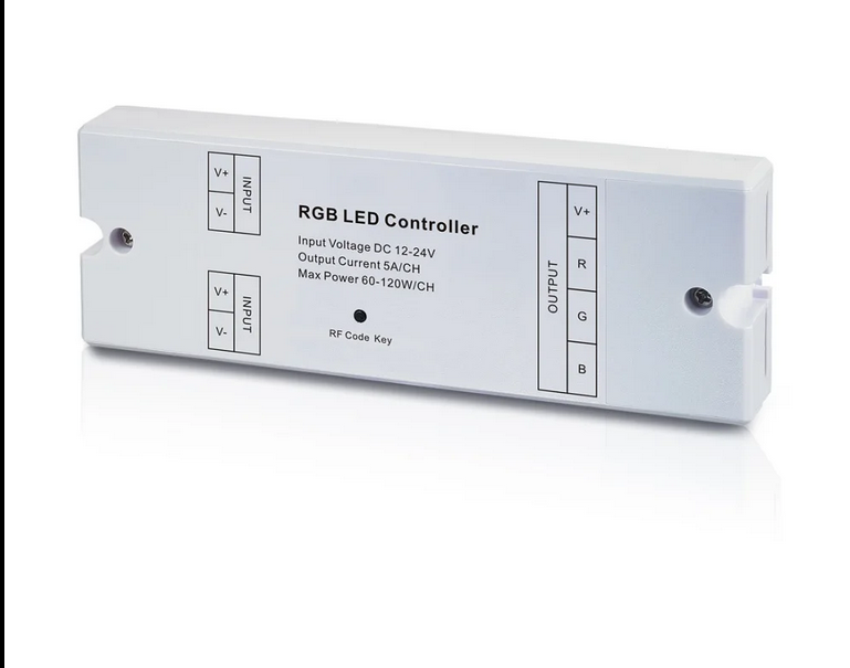 Contrôleur Radio Fréquence – RGB – 5A/CH – 360 Watts en 12/24V DC – Télécommande incluse.