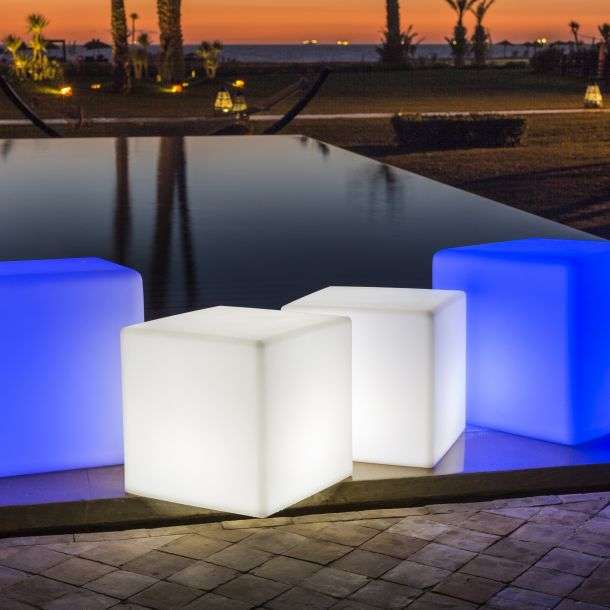 Le cube lumineux LED nomade CUBE illuminera votre aménagement extérieur de la plus belle des façons. Avec ses courbes arrondies très modernes, il se veut contemporain et complètement dans la tendance du moment. La technologie connectée et sans fil de ce luminaire vous permettra de profiter d’une belle lumière chaleureuse qui vous accompagnera partout et que vous pourrez moduler en fonction de vos envies. Avec votre smartphone, vous pourrez ainsi changer d’ambiance et créer des moments lumineux au gré de vos humeurs. Ce cube lumineux dispose du système LED intégré pour vous procurer un éclairage convivial de 120 lumens et faible en consommation d’énergie (1.2W). On aime : en intérieur comme en extérieur, sur votre terrasse, dans votre salon ou proche de votre piscine, CUBE trouvera parfaitement sa place dans votre quotidien. Profitez de votre cube lumineux CUBE pendant une autonomie de 6 à 8 heures (temps de charge 6 heures sur secteur). Dimensions : hauteur 43cm x largeur 43cm x profondeur 43cm.
