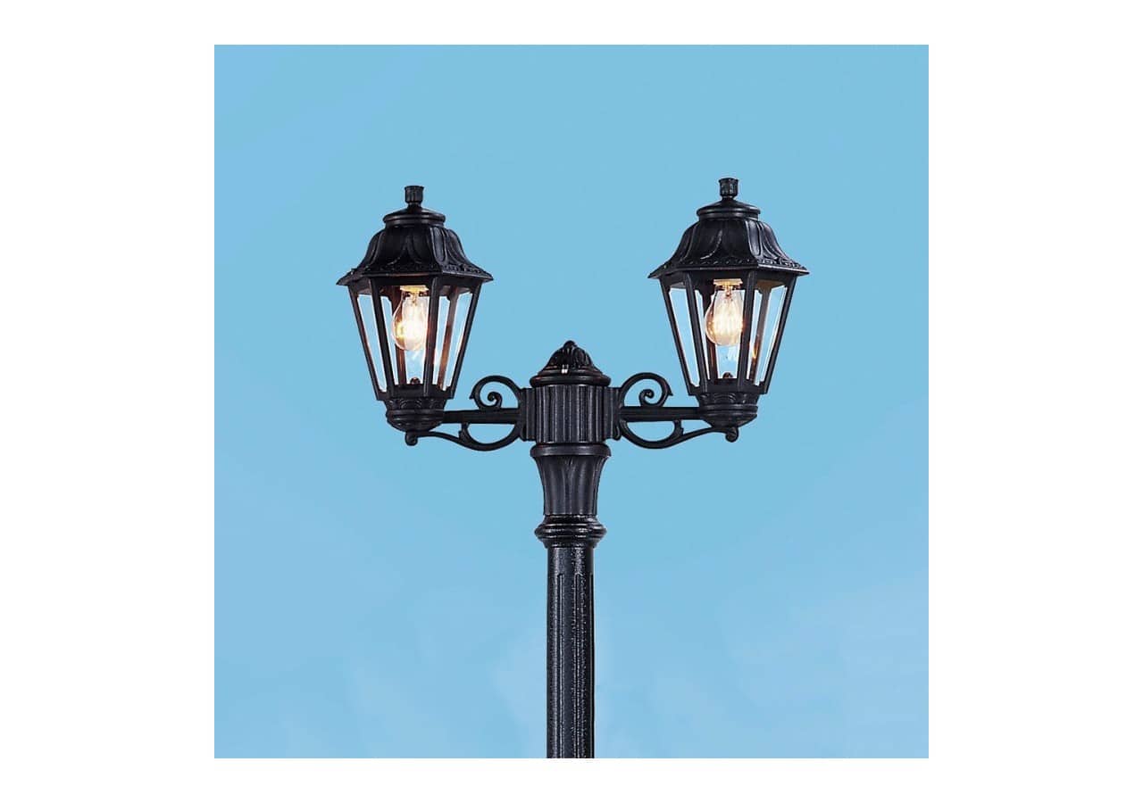 Offrez à vos extérieurs une ambiance chaleureuse et sécurisante avec ce lampadaire double de la marque italienne FUMAGALLI, au design classique revisité. Avec sa hauteur de 2,09 mètres et ses deux points lumineux, ce luminaire est idéal pour éclairer les allées, jardins, entrées ou zones résidentielles avec efficacité et style.
