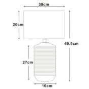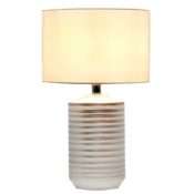 Illuminez sans plus attendre votre quotidien avec cette superbe lampe de la collection STRAYE. Son pied conçu en céramique avec de superbes rayures incrustées blanches et argentées se marie parfaitement avec son abat-jour fabriqué en tissu blanc. On adore ce mélange des matières qui apportera à votre décoration intérieure un charme moderne et une ambiance hyper chaleureuse. Cette lampe à poser est idéale sur un guéridon dans un salon ou une salle à manger en éclairage d’accompagnement par exemple, ou bien sur une commode dans une entrée ou un couloir pour une lumière plus fonctionnelle et accueillante. La lampe STRAYE sera tout aussi parfaite dans une chambre à coucher en guise de lampe de chevet pour instaurer une atmosphère douce et cocooning. Luminaire équipé d’une douille E27 compatible avec une ampoule d’une puissance maximale de 40W (ampoule non incluse). Dimensions : hauteur totale 50cm x hauteur du pied 27cm x diamètre du pied 16cm x hauteur abat-jour 20cm x diamètre abat-jour 30cm x longueur câble 150cm. Interrupteur sur câble d’alimentation. Existe également dans la même collection STRAYE en version hauteur 80cm ou bien en coloris blanc/doré.