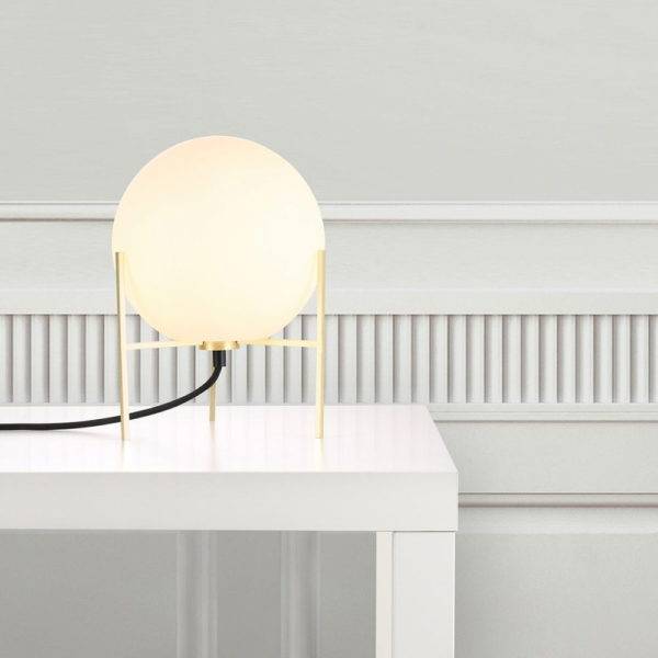 Lampe de Table ALTON en Métal Effet Laiton et Verre Blanc