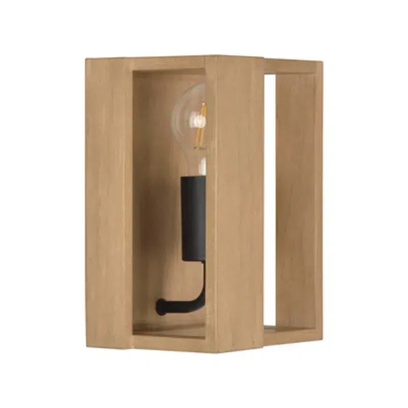 La boîte est composée de bois naturel et le réceptacle de l’ampoule de métal peint noir mat. Ce dernier peut s’apparenter à une chandelle design remise au goût du jour. Ce luminaire est équipé d’un cache douille ainsi que de deux accroches murales pour vous faciliter sa pose.