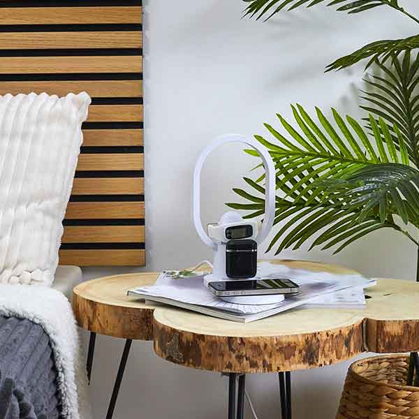 L’une des caractéristiques les plus innovantes de cette lampe est son chargeur sans fil intégré. Plus besoin de chercher des câbles ou des prises supplémentaires, il suffit de poser votre téléphone compatible sur la base de la lampe pour commencer la charge. Cette fonctionnalité pratique vous aide à garder votre bureau organisé et sans encombrement.