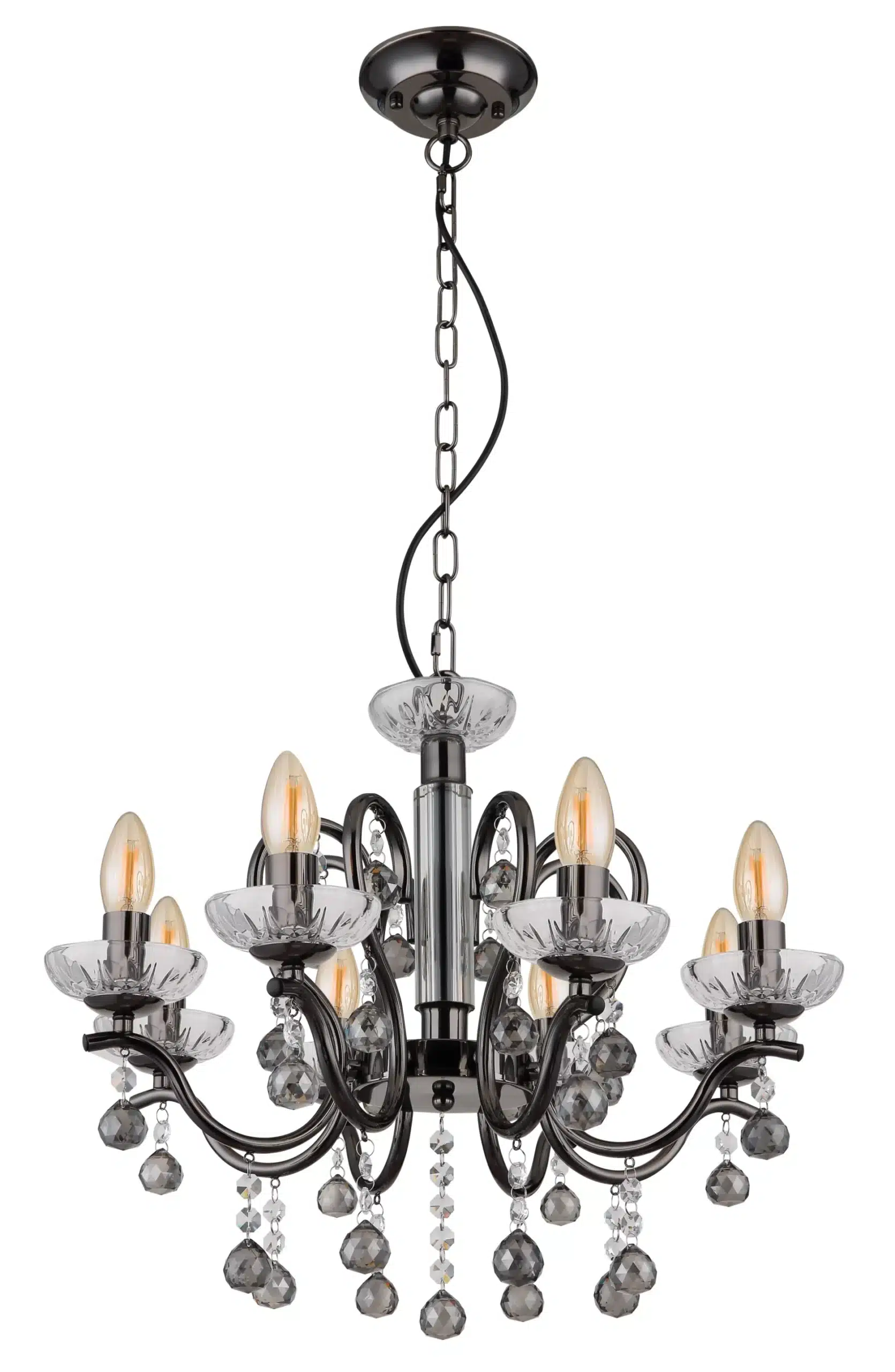 - Éclairage chaleureux : Abat-jours en cristaux transparents et fumés pour une diffusion optimale de la lumière.