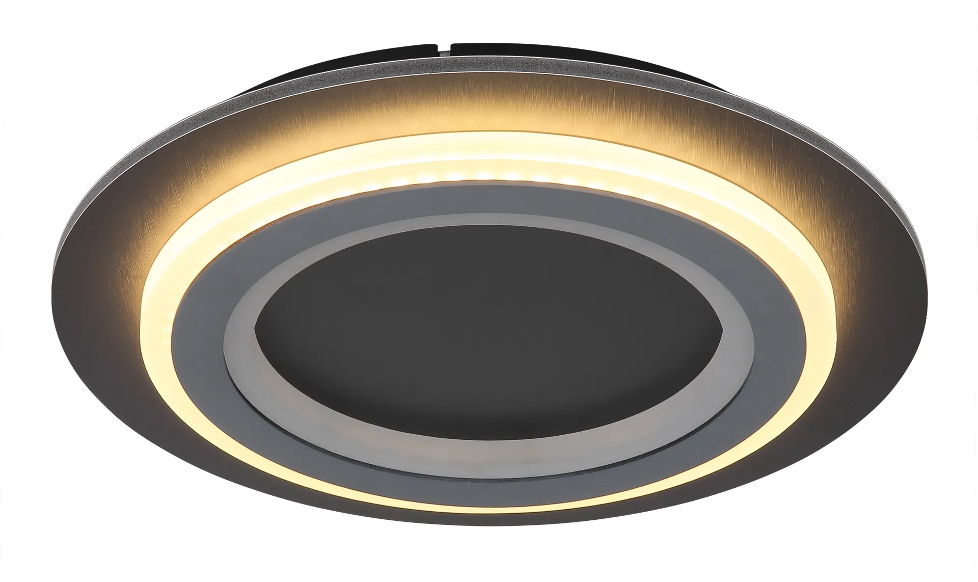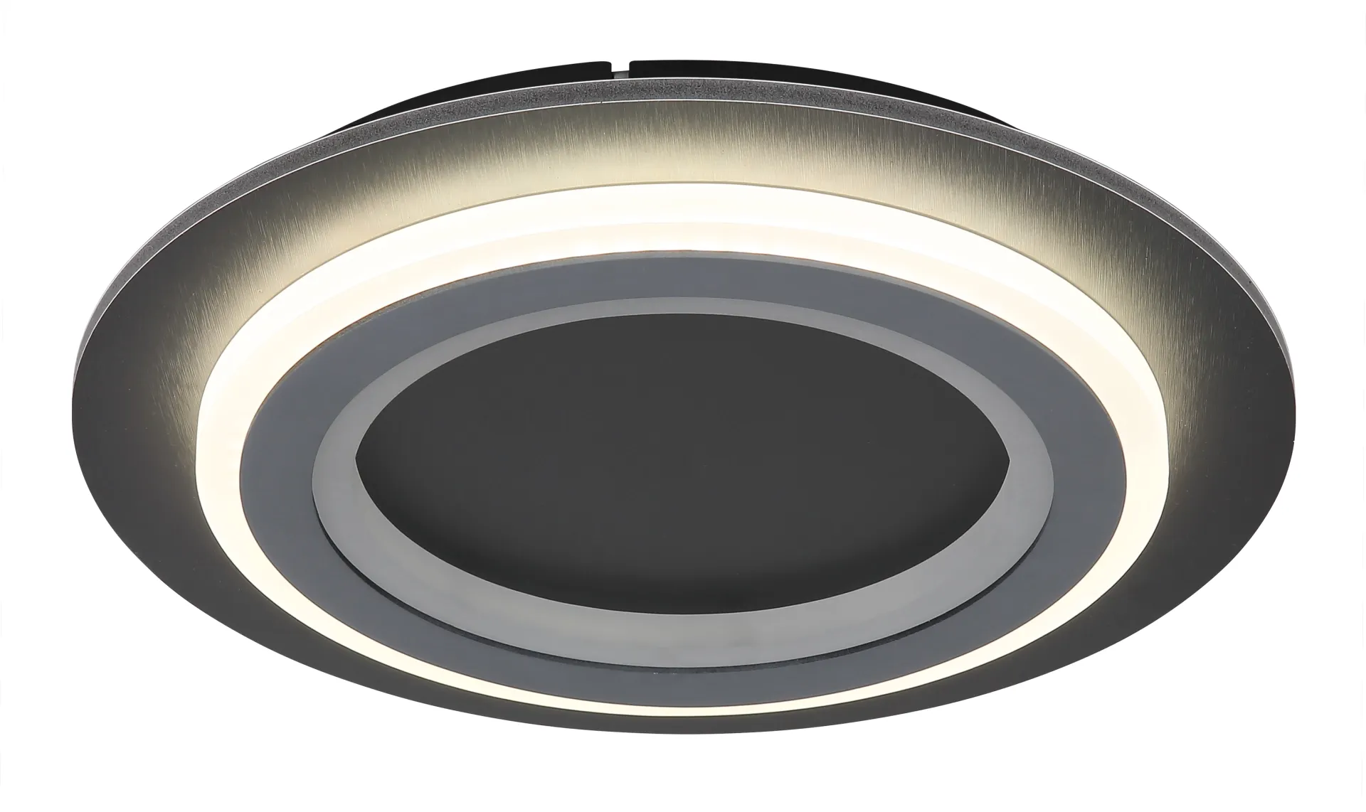 Le plafonnier JAYDEN allie design moderne et technologie innovante. Son design rond et plat et son corps en métal noir mat s’intègrent avec style dans n’importe quel intérieur. L’abat-jour est composé de plastique gris brossé et de métal gris clair, tandis que la surface en acrylique assure une répartition uniforme et douce de la lumière. La lampe offre de nombreuses fonctions qui embellissent votre maison : avec la télécommande incluse, vous pouvez contrôler la luminosité, basculer entre différentes couleurs RVB et profiter de l’effet arc-en-ciel. La température de couleur est dimmable et varie de 2700K à 6500K, vous permettant d’adapter parfaitement la lumière à votre humeur et à vos besoins. Grâce à la fonction mémoire, les dernières valeurs réglées sont enregistrées lors de la prochaine mise sous tension. Avec un diamètre de 320 mm, le plafonnier JAYDEN est un choix idéal pour les espaces modernes qui nécessitent un éclairage à la fois fonctionnel et décoratif.