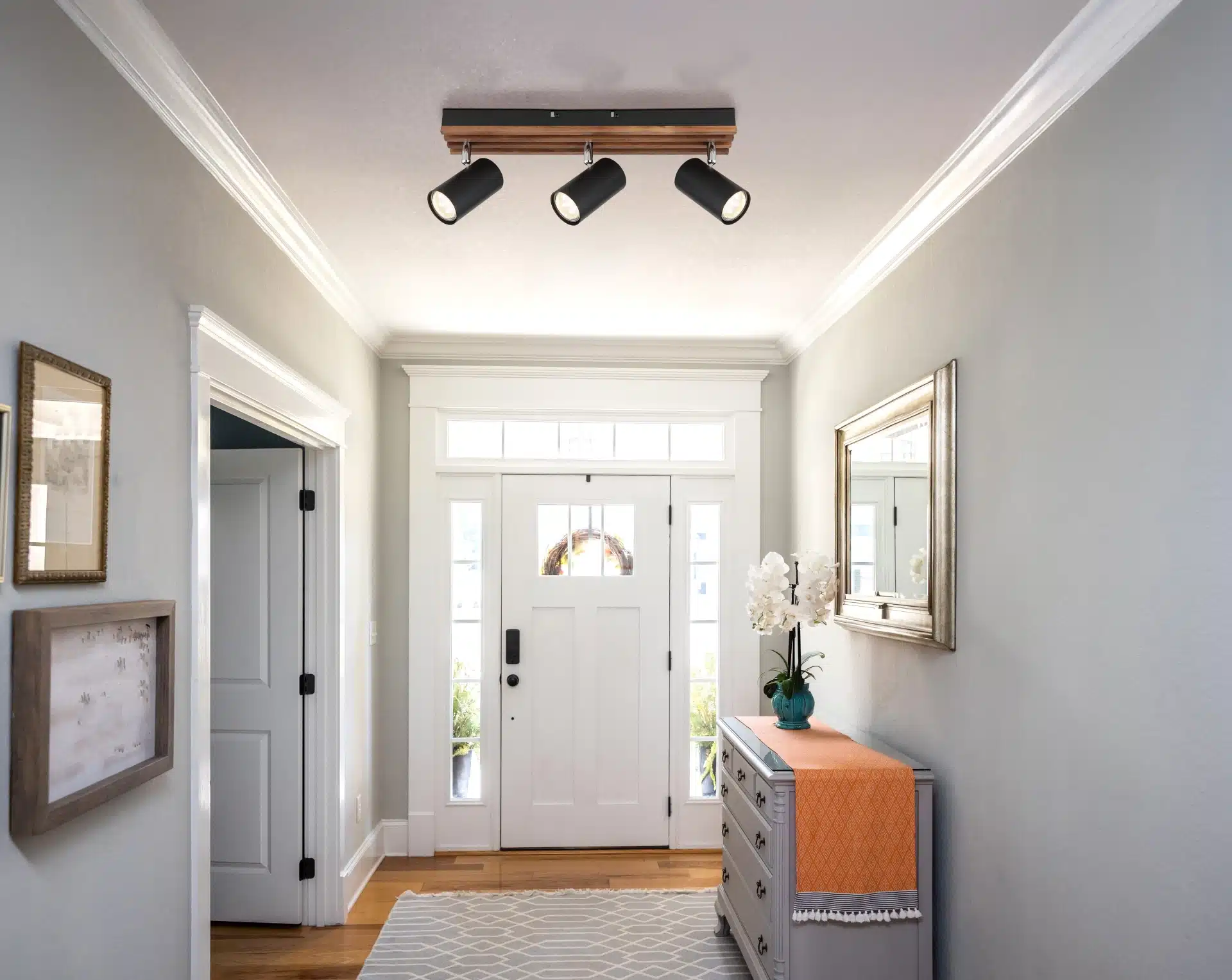 L’applique KAYDEN est un meuble élégant qui allie design moderne et accents naturels. L’enseigne murale rectangulaire en métal noir mat est complétée par une élégante applique en bois marron foncé, qui donne à la lampe un aspect chaleureux et intemporel. Les spots cylindriques, également en métal mat, peuvent être réglés de manière flexible et permettent d’orienter la lumière spécifiquement pour des effets lumineux individuels. Avec une longueur de 410 mm, une largeur de 80 mm et une hauteur de 125 mm, la lampe s’adapte parfaitement aux murs des couloirs, des salons ou des espaces de travail. Le spot spot KAYDEN est livré sans ampoule et est équipé de douilles GU10 afin que vous puissiez choisir l’ampoule adaptée à vos besoins. Avec son design moderne et fonctionnel, l’applique murale KAYDEN est un point fort pour chaque maison.