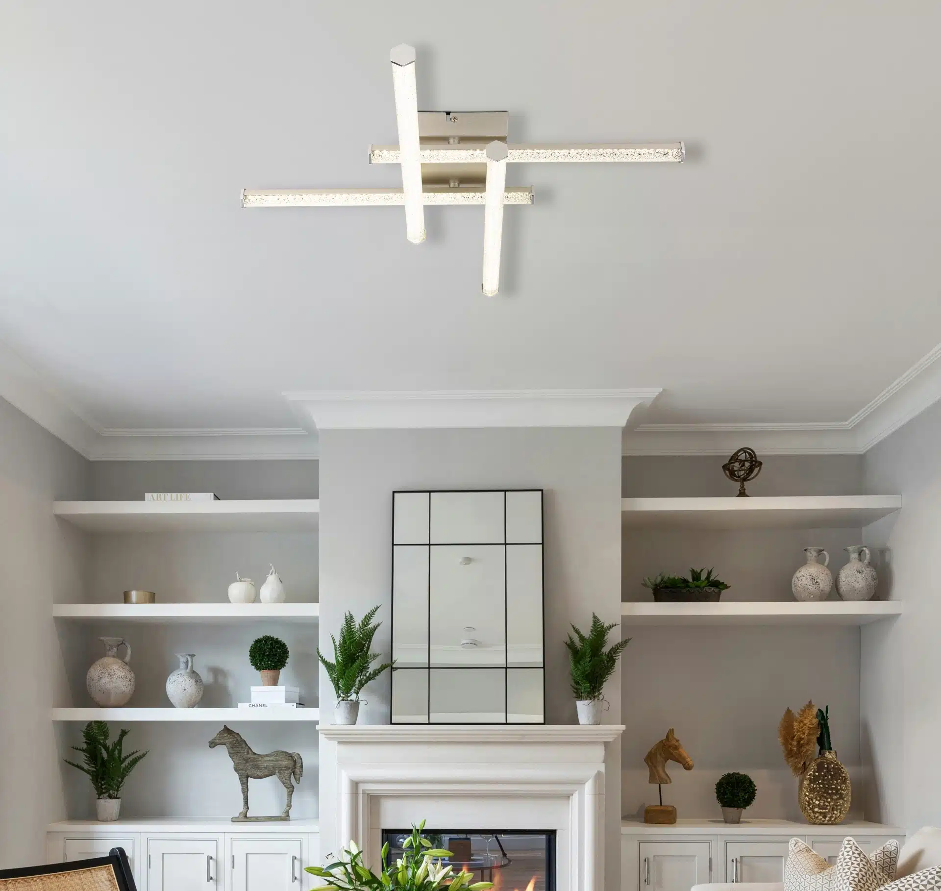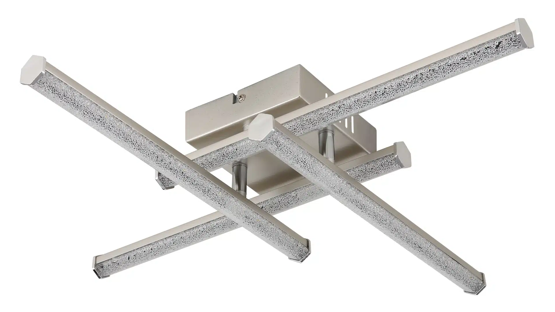 Le plafonnier Kirina offre un design moderne et carré avec quatre profils hexagonaux rotatifs. Le corps en plastique nickel-mat et chrome ainsi que l’abat-jour en plastique transparent et cristaux de plastique offrent un éclairage élégant. Avec une puissance lumineuse de 1840 lumens et une couleur de lumière de 4000 K, ce luminaire fournit un éclairage fort et uniforme. Parfait pour les espaces modernes à la recherche d’une solution d’éclairage élégante et efficace.