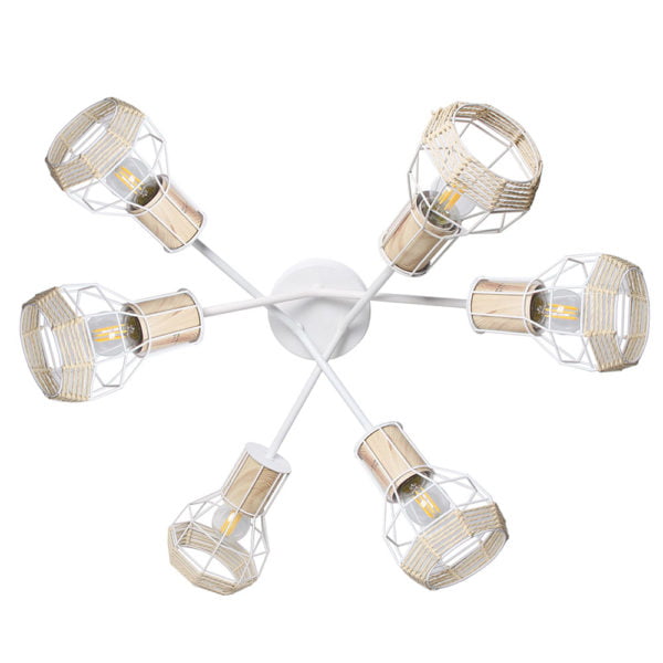 Plafonnier 6 spots ORGANIC en métal effet bois et papier blanc.