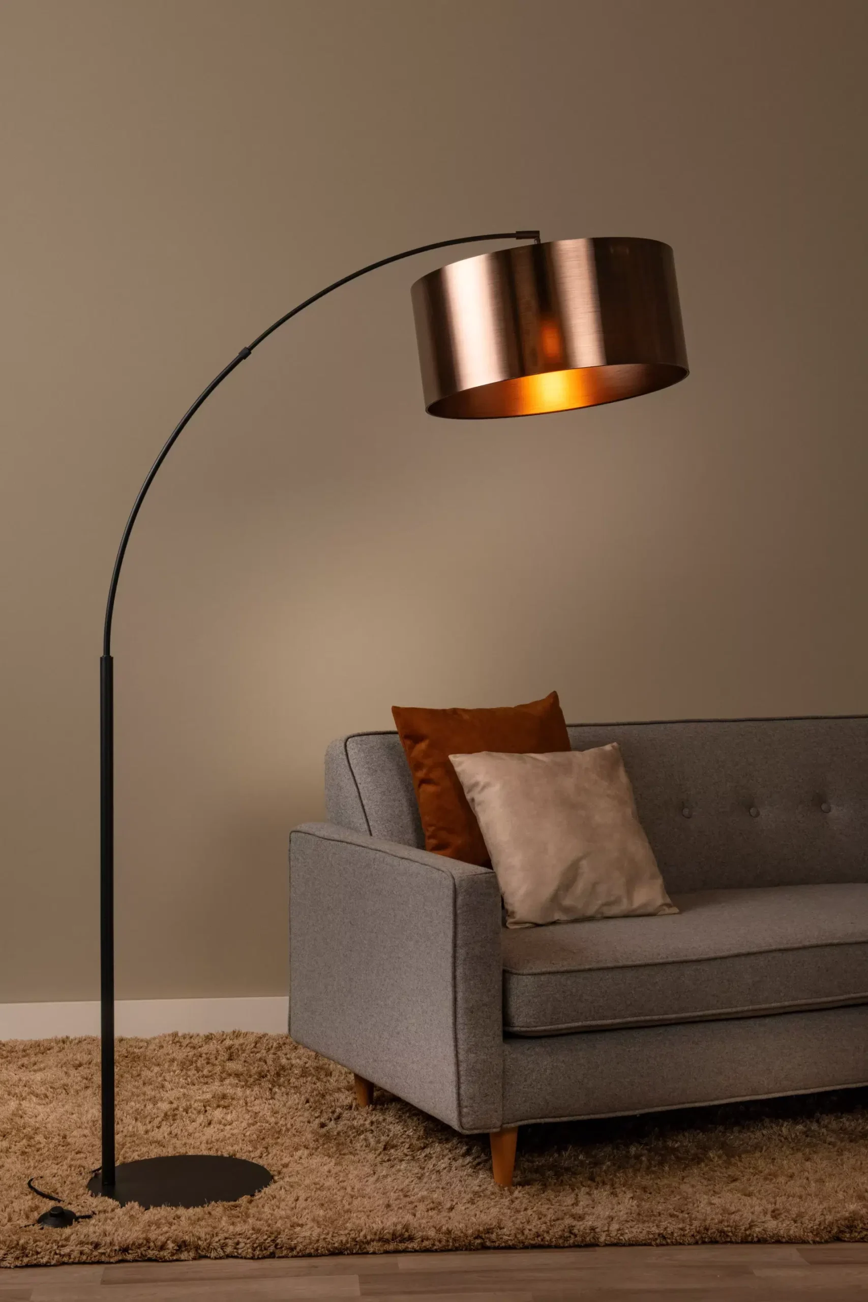 La lampe arceau RANKOS est l’éclairage parfait pour ceux qui recherchent un design moderne, une fonctionnalité pratique et une ambiance chaleureuse. Que vous souhaitiez illuminer un coin lecture, un salon, ou un autre espace, ce lampadaire apportera à la fois style et lumière. Avec son cadre métallique et son abat-jour en cuivre, il s’adapte à de nombreux styles de décoration tout en offrant un éclairage éco-responsable grâce à sa compatibilité avec des ampoules LED.