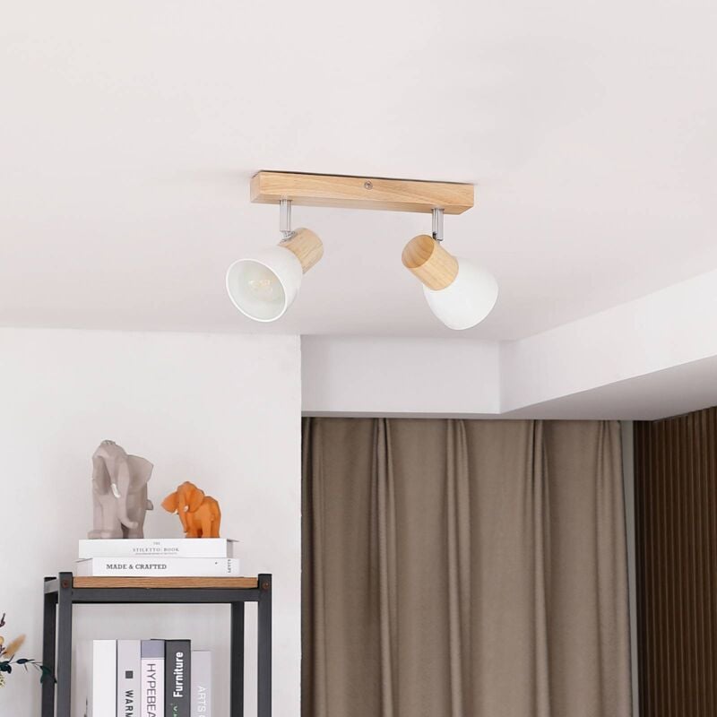 Réglette 2 spots NORSE en métal blanc et bois naturel