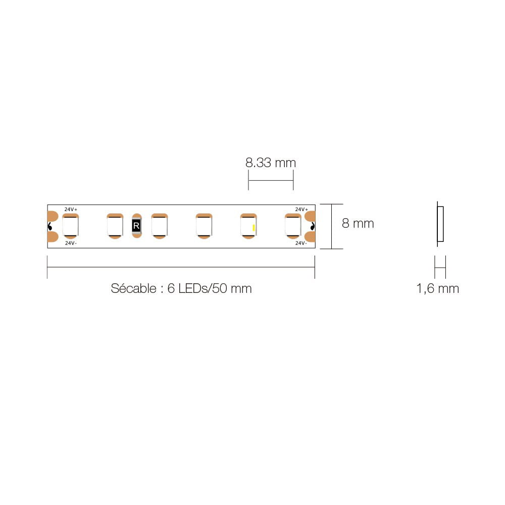 Ce ruban est équipé de LED de type SMD2835, et est une option très répandue si vous souhaitez une lumière décorative de faible consommation. Son design flexible s’adapte à tous les emplacements où il apportera une touche de luminosité.