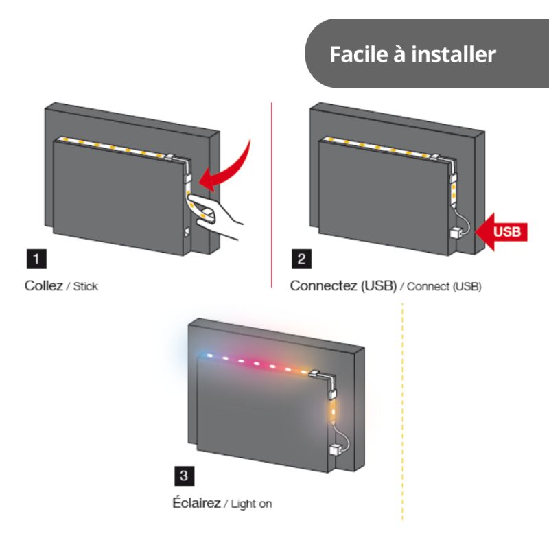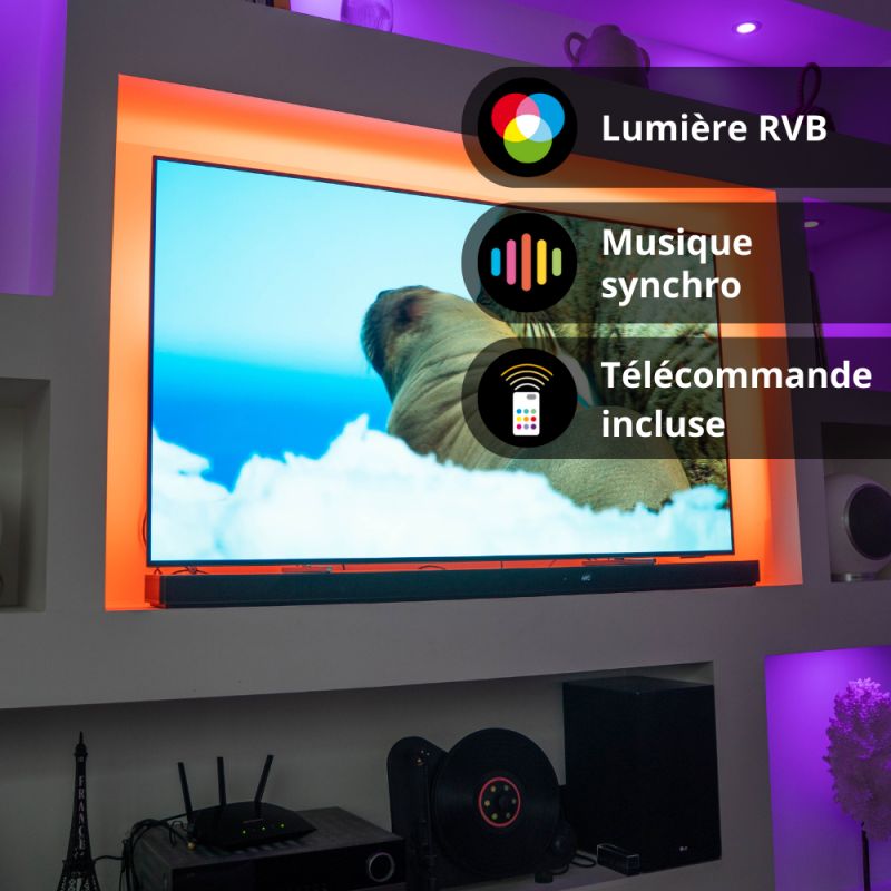 Ruban LED TV (kit complet) – 2m – RGB multicolore