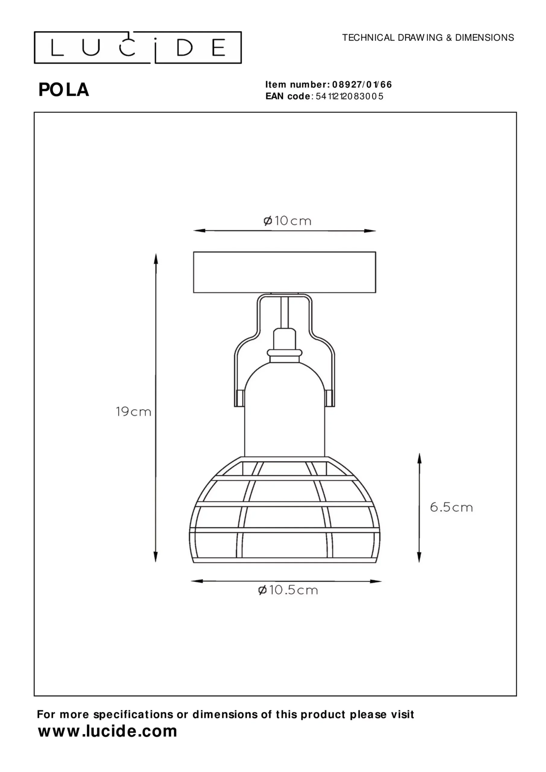 Doté d’une douille E27, ce spot offre une performance lumineuse exceptionnelle. Que ce soit pour éclairer un salon, une chambre à coucher ou un bureau, le Spot Lucide Pola illumine efficacement chaque coin de votre pièce, créant ainsi une atmosphère agréable.