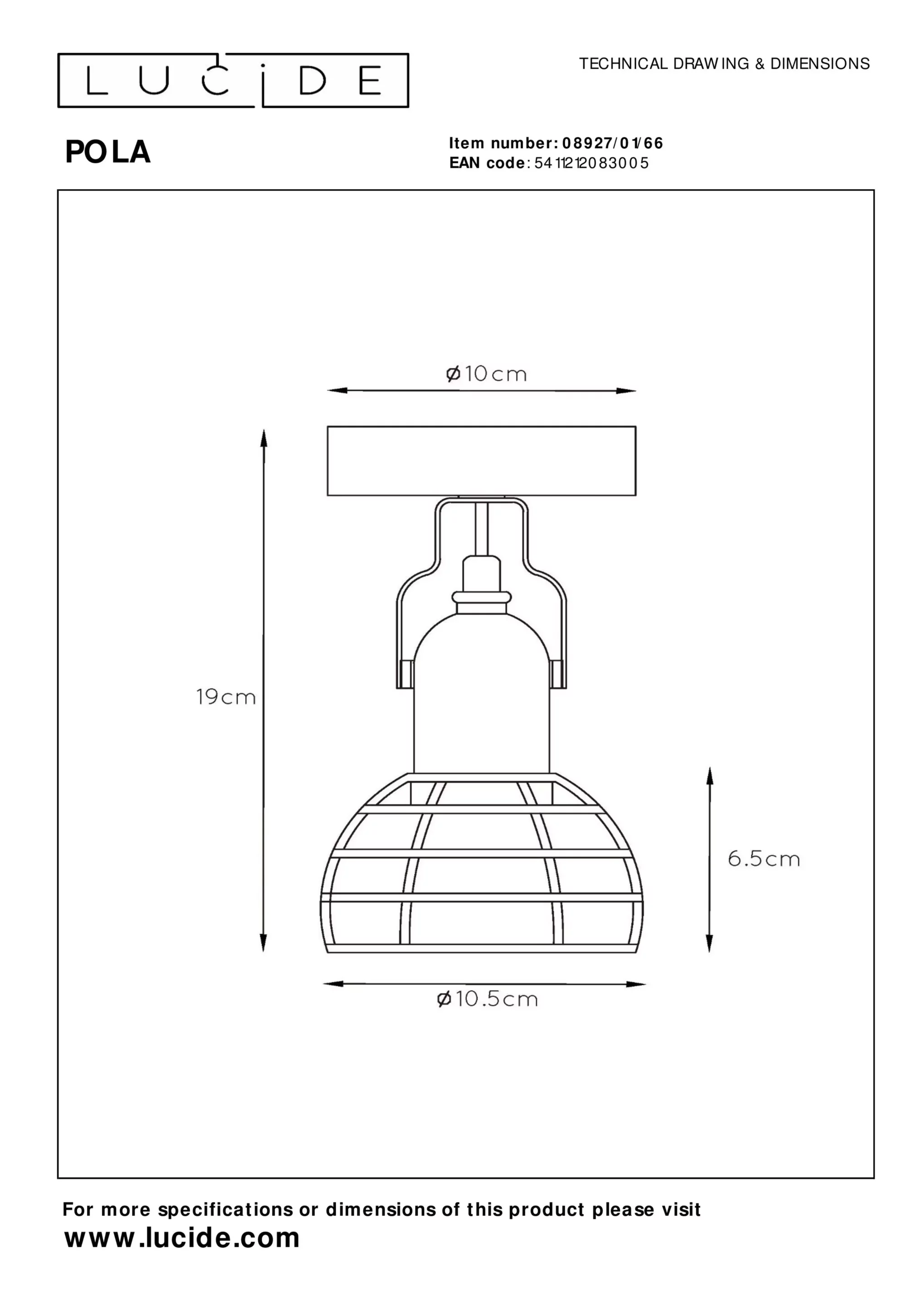 Caractéristiques du Spot Lucide Pola 1xE27