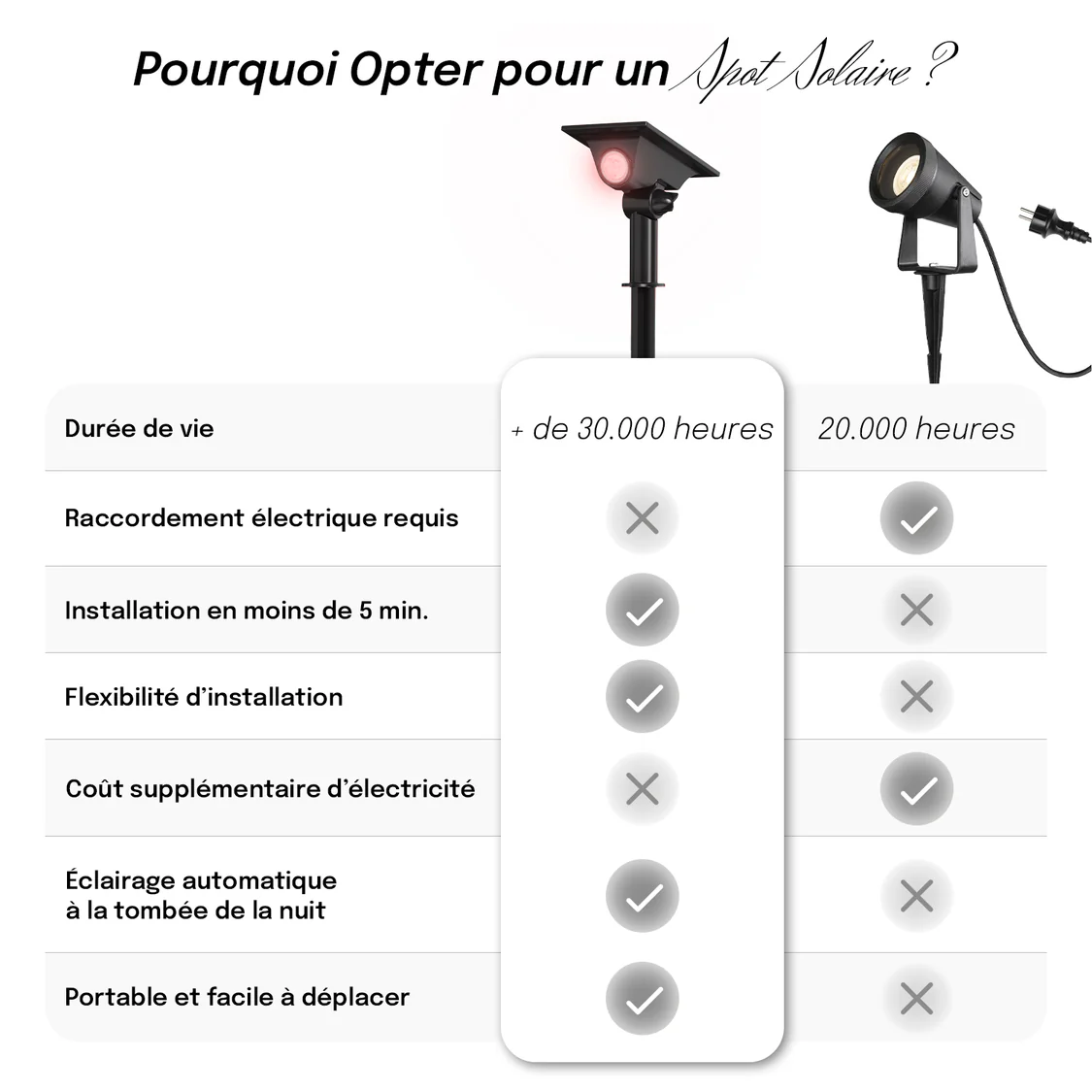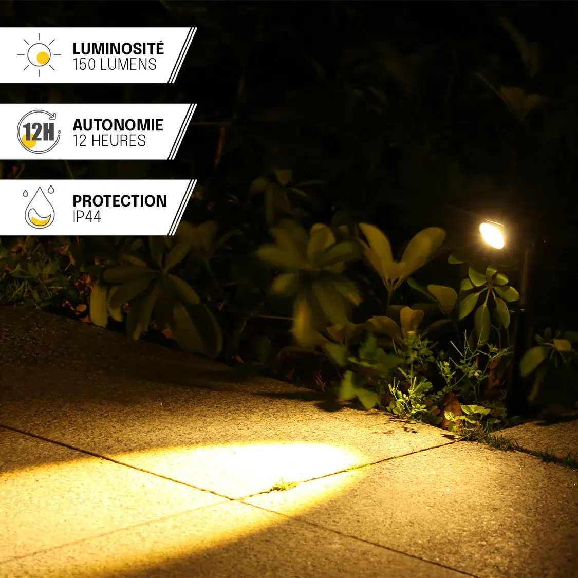 Avec une puissance de 150 lumens, ce luminaire est parfait pour baliser des chemins, souligner des plantations ou créer une ambiance lumineuse conviviale. Il est disponible en deux variantes :