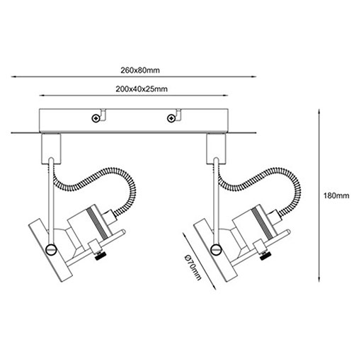 Spots modernes orientables TECHNO (2x3W) en métal noir mat