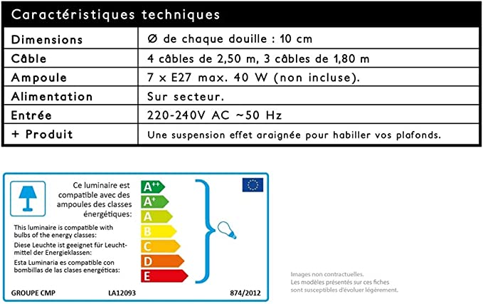 La Suspension Araignée À 7 Ampoules Elle Fera Sensation Et Modernisera En Un Coup D’Œil Votre Décoration Détail : Longueur Câbles X 4 De 2.50 M, Câbles X 3 De 1.80 M – Ampoules X 7 E27 Max 40W Non Incluses – Diamètre Douille 10 cm