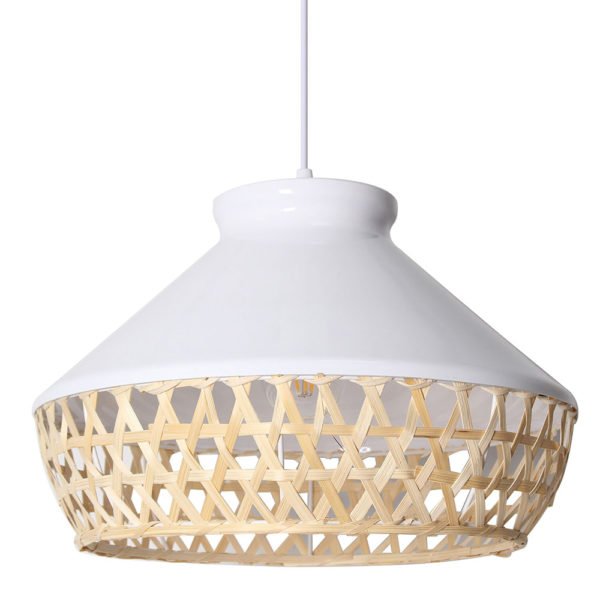 Cette sublime suspension AUBE mélange avec beaucoup de style rotin naturel et métal blanc. Son abat-jour présente un design tendance moderne très agréable qui dessinera de beaux reflets sur vos murs une fois la nuit tombée.