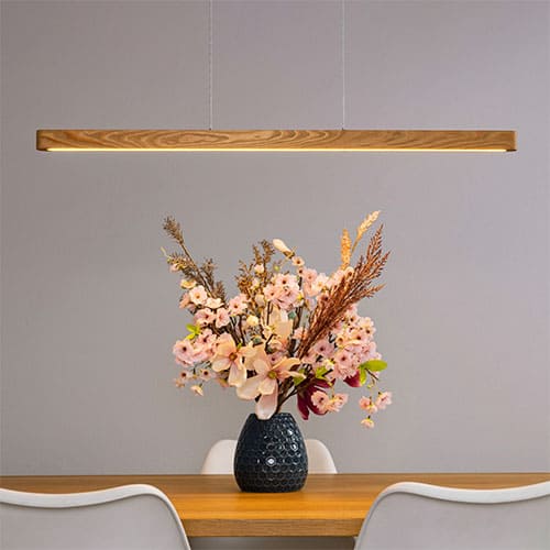 Le design minimaliste de la suspension barre LED LIGNE en fait un élément accrocheur dans tout intérieur contemporain. Sa combinaison de bois naturel et de métal noir lui confère une esthétique intemporelle qui s’intègre parfaitement à divers styles de décoration.