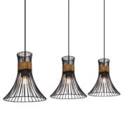 Avec notre collection de luminaires PURRA, le design filaire se fait chic et précieux avec une association de coloris noir et or très élégante et des lignes fuselées gracieuses. Avec ses 80 cm de longueur, la suspension barre PURRA est composé de 3 magnifiques abat-jour en fils métalliques noirs ficelés au niveau de la douille avec du fil doré finition laiton.