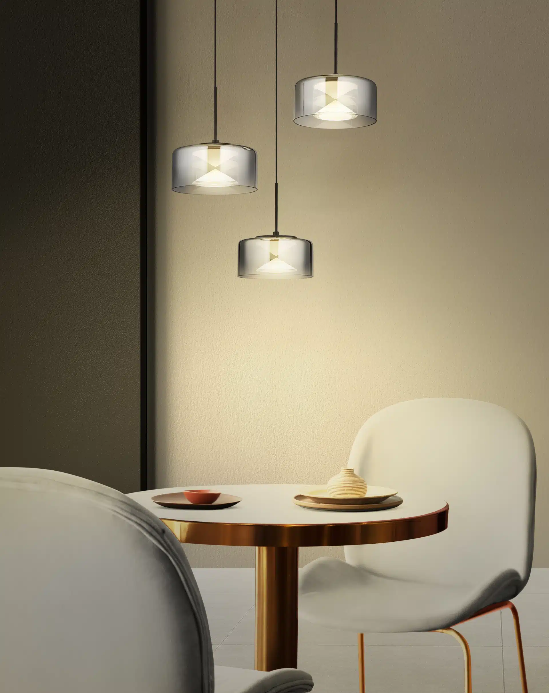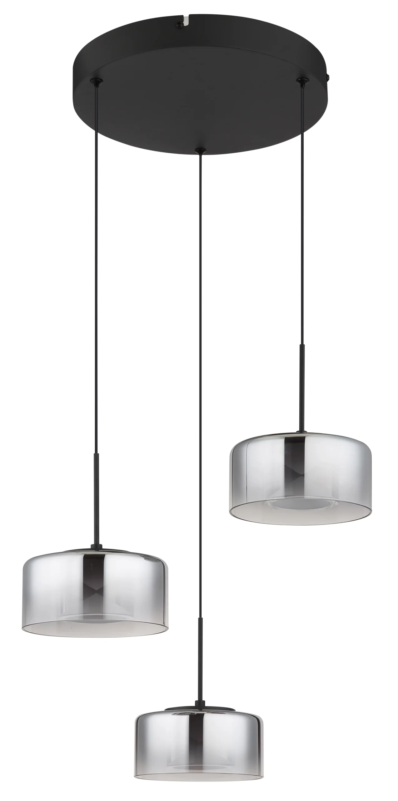 La suspension BELINDA en métal noir mat est un point culminant élégant pour n’importe quelle pièce. Ses trois abat-jour ronds en verre transparent de couleur fumée créent une atmosphère lumineuse chaleureuse. Avec un diamètre de 400 mm et un flux lumineux de 1200, il est idéal pour éclairer les salles à manger ou les salons. La température de couleur de 4000 K fournit une lumière claire et neutre qui est parfaite pour les styles d’intérieur modernes. Cette lampe allie fonctionnalité et design contemporain.