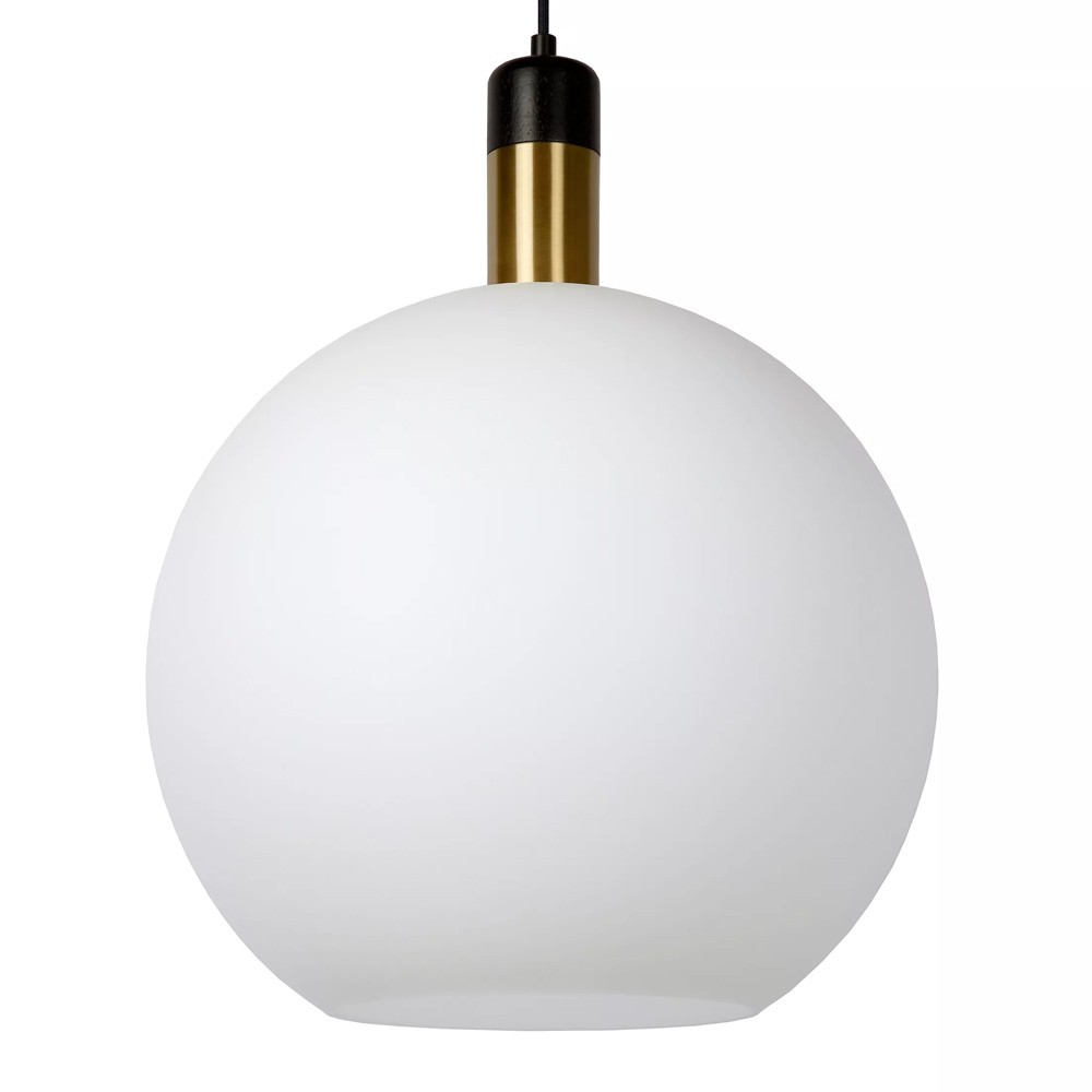 Matériaux : verre opale, métal doré mat, bois teinté noir