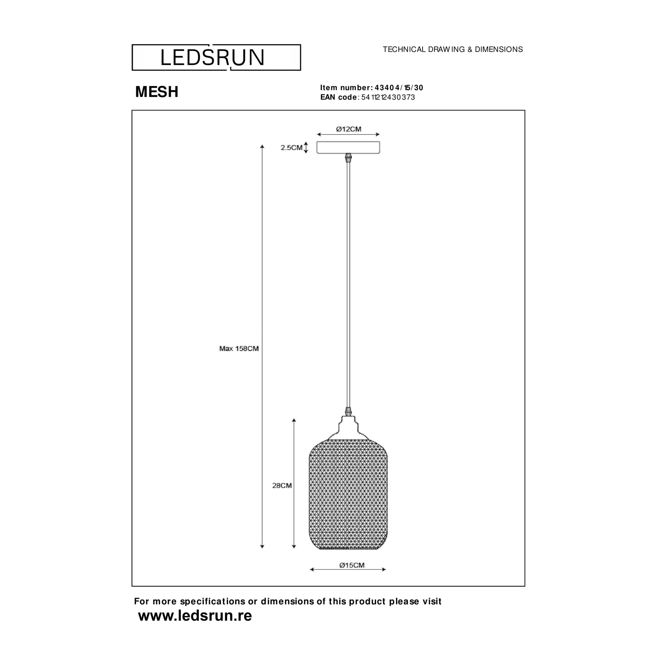- Consommation énergétique: 1x60W / 230V / A intensité variable (excl.)