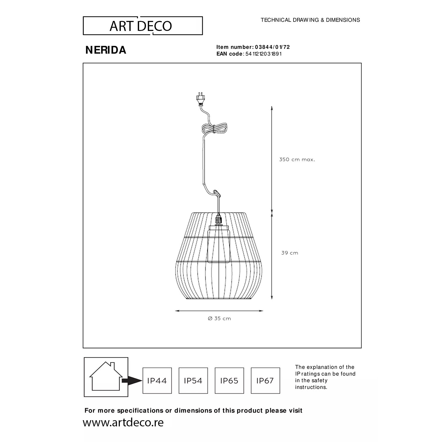 Suspension Lucide Nerida 1xE27 35cm IP44,naturel
