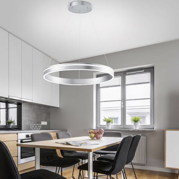 La suspension LED Q®-VITO de couleur acier séduit par son design et crée un véritable attrape regard chez vous. Grâce à la gestion intégrée de la lumière CCT, vous pouvez ajuster individuellement la température de couleur du blanc chaud au blanc du jour et simuler ainsi les couleurs de la lumière d’une journée.