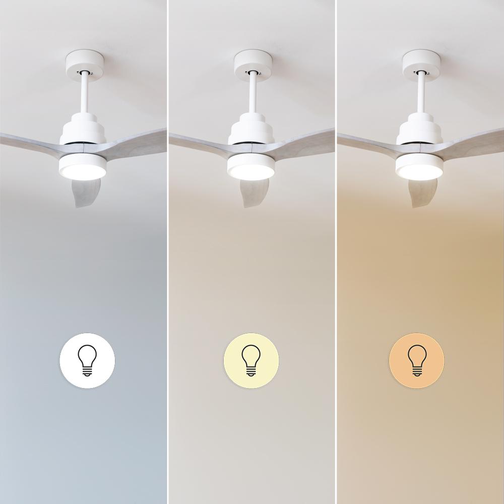 Avec un diamètre de 132 cm (52”), il est conçu pour maximiser la couverture d’air frais dans votre espace. Ses 3 pales aérodynamiques, de grand diamètre et innovantes, garantissent un flux d’air constant et efficace. L’éclairage LED intégré transforme ce ventilateur en un équipement hybride pratique, offrant une lumière et une ambiance idéales. Vous pouvez choisir parmi trois couleurs de lumière pour personnaliser l’atmosphère de votre pièce.