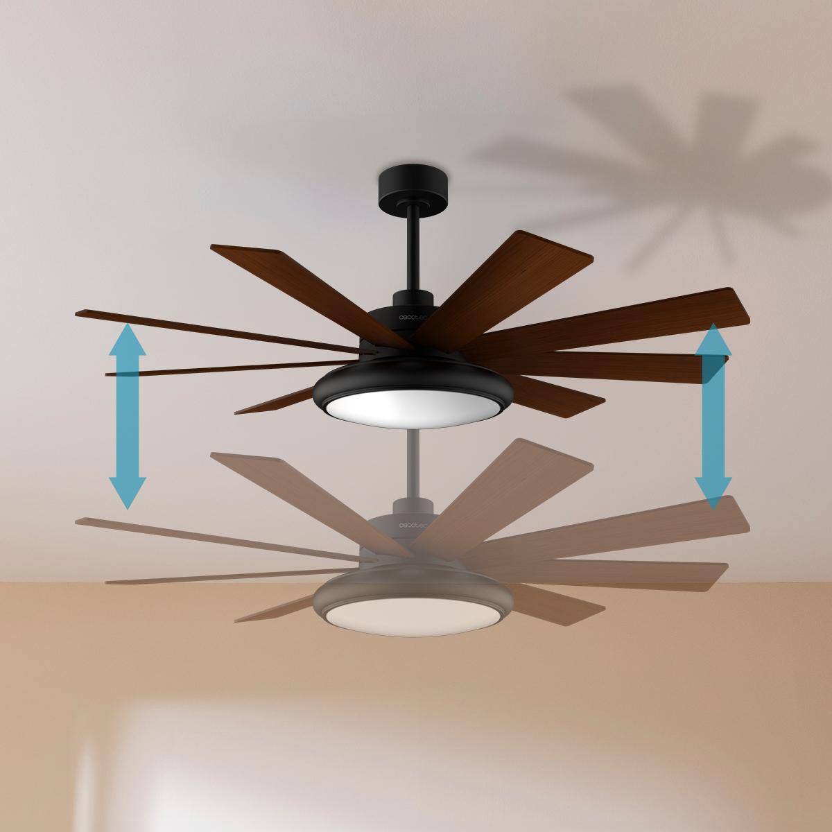 Équipé d’une lampe LED de 32 W, ce ventilateur propose également un mode Été/Hiver grâce à son système d’inversion des pales. Ajustez sa hauteur (39,5 cm ou 52 cm) et choisissez parmi 6 vitesses pour un flux d’air personnalisé. Avec une télécommande pratique et une minuterie programmable jusqu’à 8 heures, l’Aero7000 Pro s’adapte à vos besoins. Design noir/noyer, idéal pour rehausser votre intérieur.