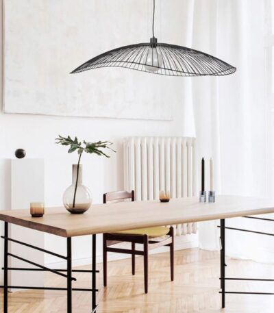 399,00 €Cette suspension design COLIBRI marie avec beaucoup de charme élégance et tendance. Sa structure conçue en métal noir est ajourée pour vous faire profiter de beaux jeux d’ombres sur vos murs une fois la nuit tombée, et ainsi créer une ambiance unique dans votre intérieur.