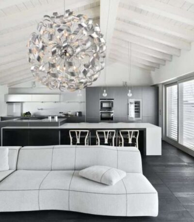 839,00 €Plongez votre espace dans une ambiance lumineuse sophistiquée avec la suspension déco ATOMA argentée. Sa conception en verre transparent offre une luminosité éclatante, illuminant chaque coin de votre pièce avec grâce et style.