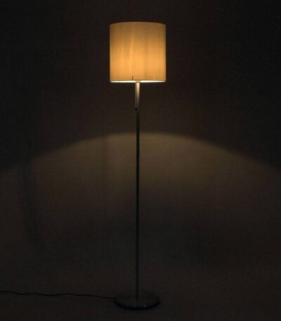 Ce lampadaire en tissu blanc conviendra parfaitement dans un intérieur moderne, contemporain. Vous pourrez découvrir dans la même série la lampe de table 60W et la suspension 100W.